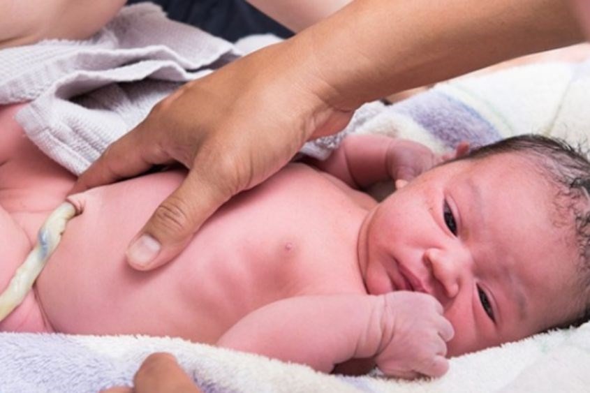 Đoạn dây rốn giữa 2 đầu kẹp sẽ cắt bỏ. Trên bụng trẻ sẽ còn một góc dây khoảng 2-3cm. Thông thường, hộ sinh hoặc chồng của mẹ bầu sẽ cắt bỏ đoạn dây này.